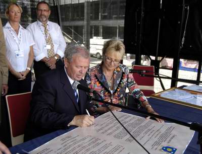 unterzeichnen auf dem Heroldsberger Partnerschaftsfest die Partnerschaftsurkunde