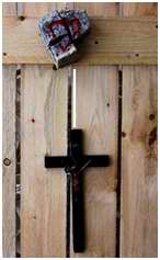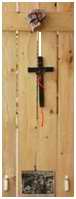 und auf der Rückseite war ein Kruzifix sichtbar. Die Achse des Rades,